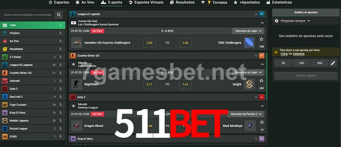 O 511bet oferece uma grande seleção de opções de apostas em e-sports com probabilidades competitivas
